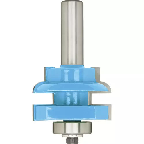 This two-piece stile and rail set is sized for 3/4 inch to 1 inch thick cabinet door frames. 1/4 inch wide dado accepts veneered plywood or solid raised panels. Matched stile and rail sets save set-up time when using two routers. FOR ROUTER TABLE USE.