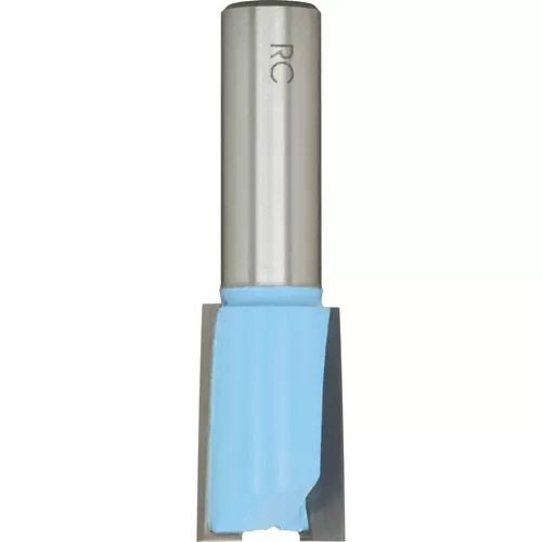 A shear cut double-fluted straight router bit for smoother cuts and grooves.
