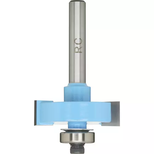 A versatile rabbeting router bit for making precise woodworking straight cuts and grooves.