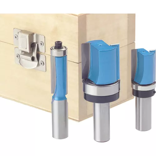 1/2" Shank diameter.1/2" x 13/16" bit with bottom guide bearing 3/4" x 1" bit with top guide bearing 1-1/8" x 1-1/2" bit with top guide bearing