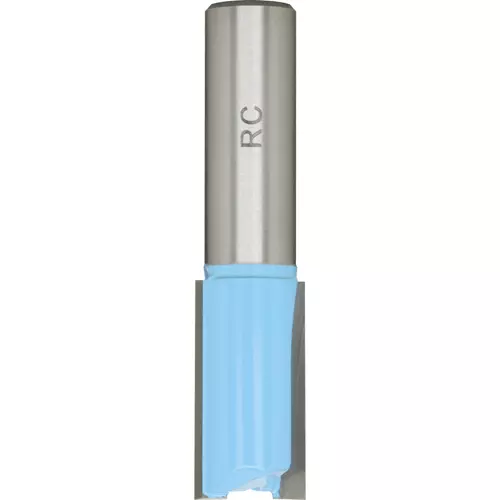 A versatile double-fluted straight router bit for making precise woodworking straight cuts and grooves.