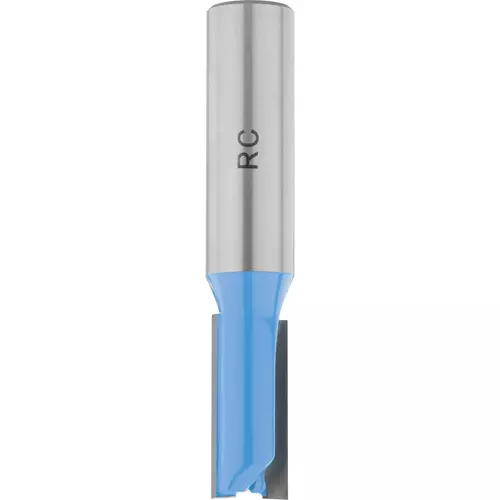 A versatile double-fluted straight router bit for making precise woodworking straight cuts and grooves.