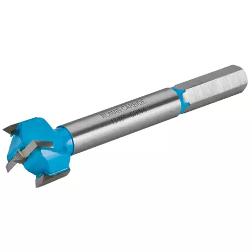 These Roman Carbide® Forstner Bits are some of the nicest Forstner bits available! Micro-grain carbide cross tips and center cutters stay sharper longer, for years of dependable service when drilling hard and soft woods, face grain, end grain, and figured grain. Carbide cross-tips and center-cutters also provide smoother, chatter-free, and faster cutting results. Hex shanks guarantee no slipping, unlike round shanks, which result in scarring and diminished accuracy. Hex shanks fit 3/8" drill chucks.
