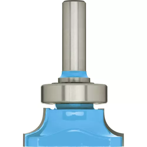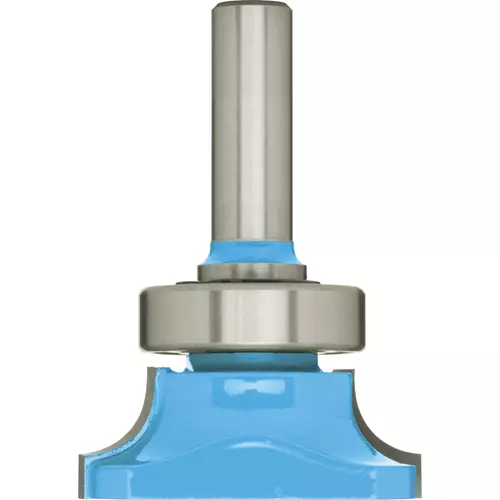 This bit is used to profile the underside of solid surface countertops and eliminates the need to turn over the heavy countertop to finish the front. Leave it where it is and use this bit. For use with Corian and similar materials.