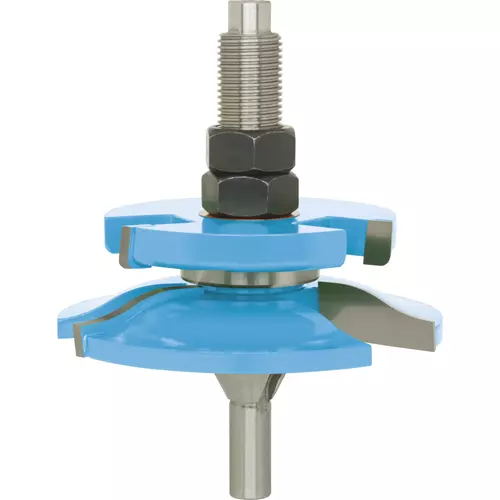 The cutter can be used on woods, wood composites, plywood, and some plastics at 7,000 R.P.M.