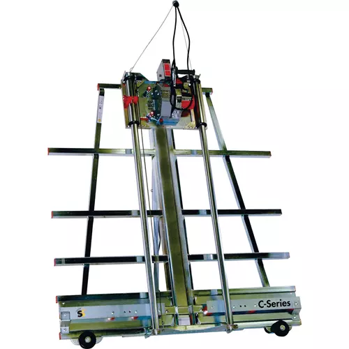 The T33596 Safety Speed C5 vertical panel has a 5' frame and features a 64" maximum crosscut.