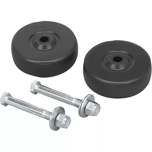 When the machine is resting on either stand, wheels are disengaged and the machine will not move independently. Two wheels included.