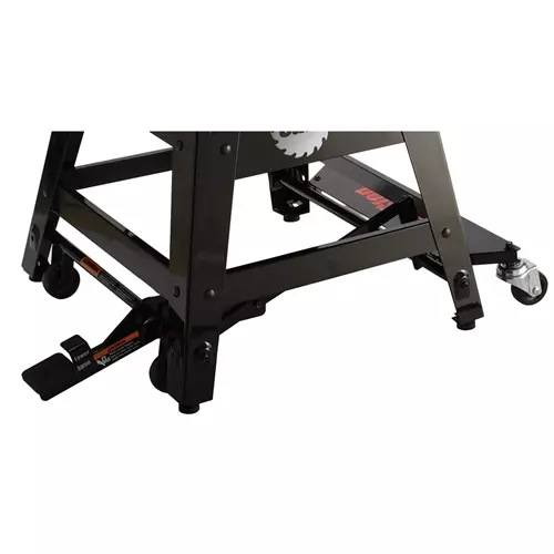 Easily install this integrated base when the saw is new, or add it on years later. Designed to smoothly move your SawStop Contractor Saw on any flat surface with the easy step of the lift pedal. The mechanism lifts with one-foot simplicity, and two polyurethane fixed-direction wheels and two 360° casters ensure easy movement. Powder-coated steel ensures durability, and allows the base to support the saw without the need for any extension pieces.