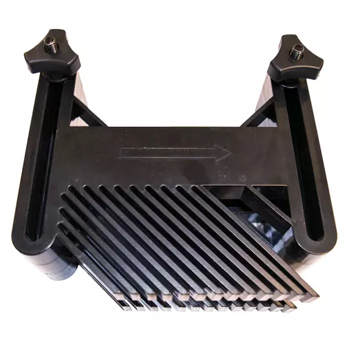 Designed to fit SawStop RT table miter slots, this double-height feather board can be used as-is or as two separate feather boards to help minimize kickback.