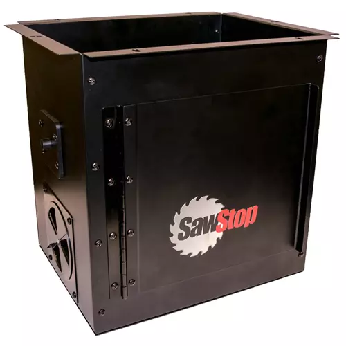 Engineered to draw the dust down from the router bit and deliver to a 4" port for collection, all while substantially minimizing router noise, this steel collection box features interchangable panels for optimum dust port and vent placement. Plug the 2.25" dust hose from the router fence directly into the dust box's branch inlet, and let the 4" port deliver above and below table dust from the same port.