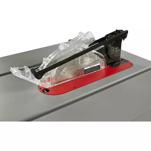 The guard provides protection around the blade and collects above-table dust. This greatly reduces the chance of injury and minimizes the amount of airborne dust.