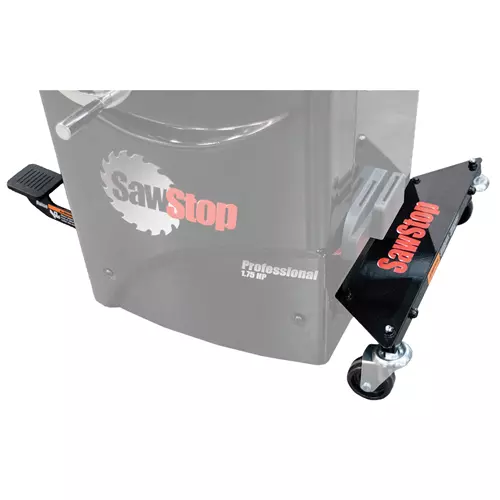 Easily move your saw around your shop. Fully welded 1/4" rigid steel construction, hard wearing black powder coat finish. With four independent casters, move your saw easily into a corner and out of the way when not in use. No need to worry about wheel brakes: when disengaged the saw rests firmly on the ground, distributing weight directly to the floor, not the wheels. Maximize compatibility with SawStop Options, from In-Line Router Tables to the Sliding Crosscut Table and more. Compatible with most PCS configurations. Please verify compatibility using the build and price tool on SawStop.com