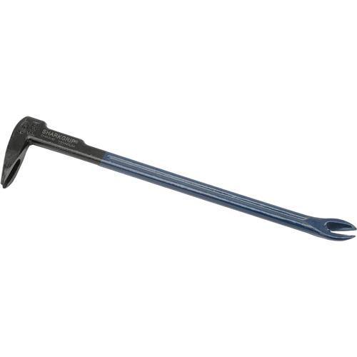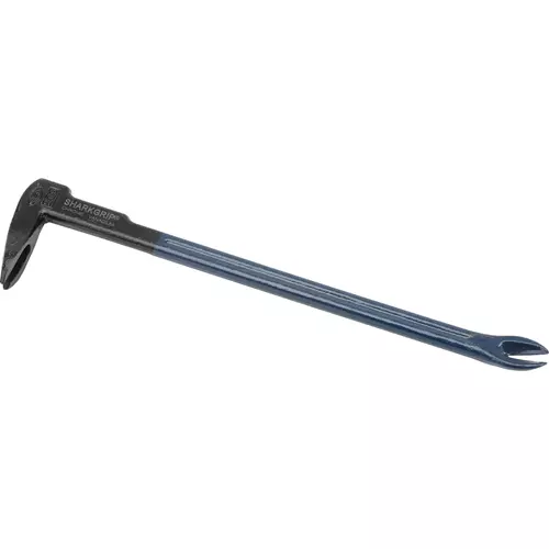 All SharkGrip® nail pullers and prybars are forged from the finest heat-treated Japanese alloy steel; the nail-pulling and prying ends are double-tempered for added strength. The pulling "V" is hardened to a Rockwell 50-52 hardness, then hand-finished for accuracy. The resulting tool is so strong it can even bite into hardened and stainless steel nails. SharkGrip nail pullers pull from the shank of the nail,