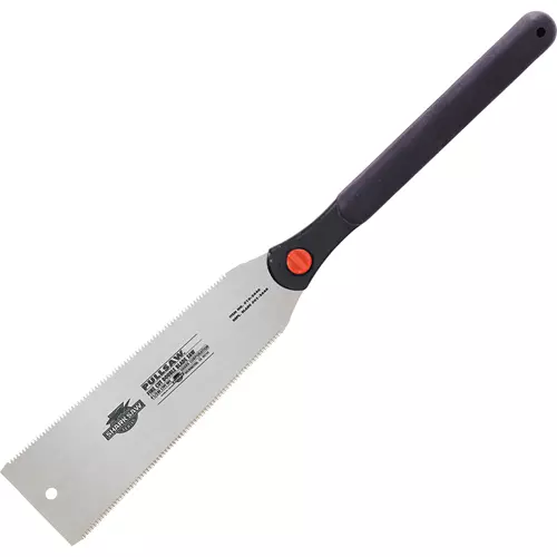 This flexible fine-cut saw is great for cabinet work, flush cutting (dowels), general fine cutting, mitering, plywood, stair systems, and undercuts (door jam/casings). It can be used for flexed or flush cutting and features the pull-to-cut method for faster, cleaner, easier, and safer sawing. The pull-saw teeth have three cutting edges that are precision diamond-cut, not merely stamp-cut. The saw handle is weather-resistant high-impact ABS plastic. A red push button, which works on a single-push action, easily engages or releases the blade for replacement or for compact storage. The 9-1/2-inch blade has 17-teeth per-inch on one side and 9 per-inch on the other.