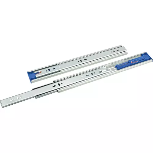 Push-To-Open Slides provide a clean, contemporary look since knobs or pulls are not needed. Simply push the drawer in and the drawer automatically opens. Slides are 1/2" thick and have precision ball bearings, easy drawer removal systems, and are 32mm compatible. Full extension, sold in pairs. Hardware not included.
