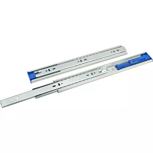 Push-To-Open Slides provide a clean, contemporary look since knobs or pulls are not needed. Simply push the drawer in and the drawer automatically opens. Slides are 1/2" thick and have precision ball bearings, easy drawer removal systems, and are 32mm compatible. Full extension, sold in pairs. Hardware not included.Size: 14" Weight capacity: 66 lbs.