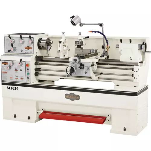 - If your job shop is in need of a quality lathe, then the Model M1020 is your answer. Powered by a 3HP motor, this lathe features 12-speeds, a generous 14" swing, 40" distance between centers and 62 different standard and metric threading options. Remove the gap and give yourself an extra 6" in diameter. 3" jaw and 4" jaw chucks, coolant pump, halogen lamp plus a whole lot of accessories are standard on this machine.