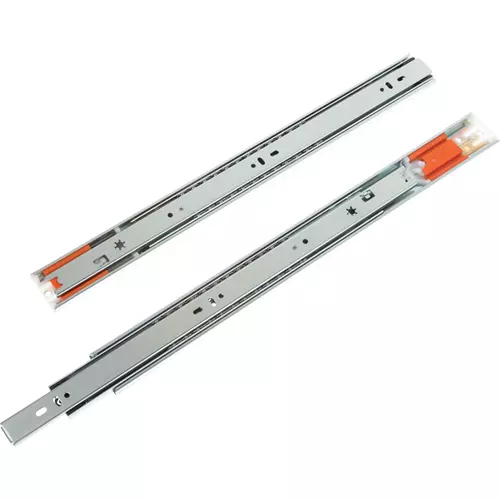 Push-To-Open Slides provide a clean, contemporary look since knobs or pulls are not needed. Simply push the drawer in and the drawer automatically opens. Slides are 1/2" thick and have precision ball bearings, easy drawer removal systems, and are 32mm compatible. Full extension, sold in pairs. Hardware not included.