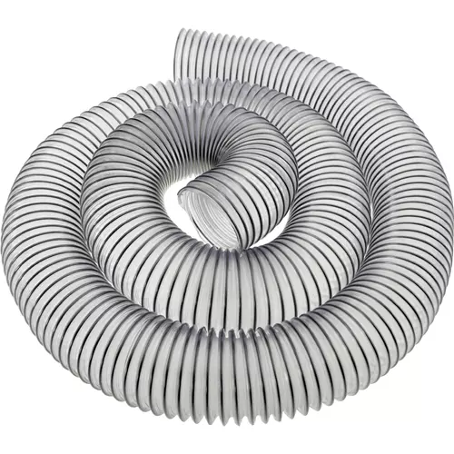 This premium PVC hose is reinforced with a spring steel wire helix. Hose offers excellent flexibility, strength, dimensional stability, crush and abrasion resistance and good compressibility. Transparent materials provide great visibility to see inside your dust collection system for monitoring flow or locating debris accumulation. Uses RH fittings. 2-1/2" ID.