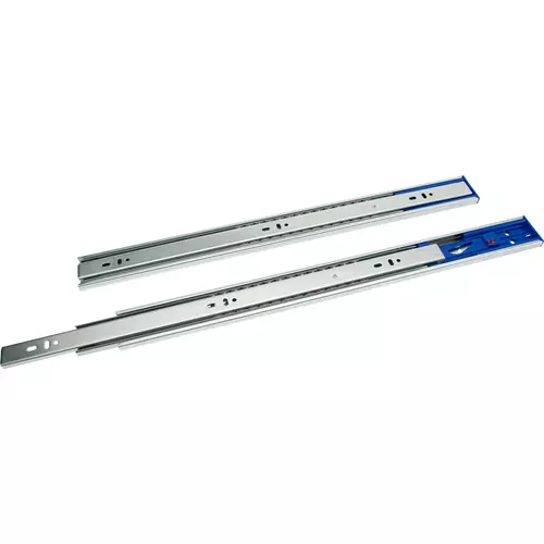 These Self-Closing Slides automatically pull the drawer closed when the drawer is pushed to within 2" of closing. This mechanical, soft-closing action ensures all drawers stay neatly closed. Slides are 1/2" thick and have precision ball bearings, easy drawer removal systems, and are 32mm compatible. Full extension, sold in pairs. Hardware not included.Size: 20" Weight capacity: 66 lbs.