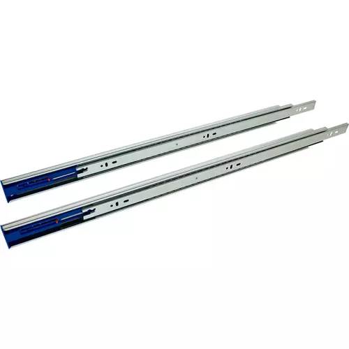 Push-To-Open Slides provide a clean, contemporary look since knobs or pulls are not needed. Simply push the drawer in and the drawer automatically opens. Slides are 1/2" thick and have precision ball bearings, easy drawer removal systems, and are 32mm compatible. Full extension, sold in pairs. Hardware not included.Size: 24" Weight capacity: 44 lbs.