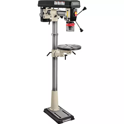 The Shop Fox W1670 34" Floor Radial Drill Press boasts a 1/2 HP motor that smoothly powers the five spindle speeds ranging from 550 to 3000 RPM.