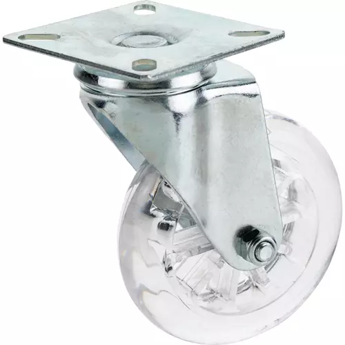This non-marring caster features ball bearing swivels and a high density clear plastic wheel.