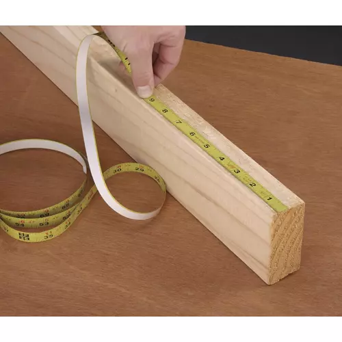 This Measuring Tape is self-adhesive, measures 55", and reads from right to left. Color may vary.