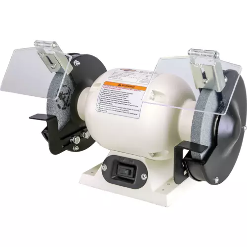 This 6" Bench Grinder is a great option for sharpening and light industrial work. Includes adjustable safety shields and tool rests. This grinder is fast starting and cool running for all day performance.