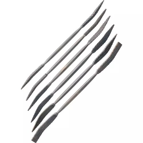 This double-ended 6-piece set in fine, medium and coarse cut teeth has curved tips in a variety of shapes and profiles. Features the same unique profile on each end. Perfect for wood carvers and restoration specialists.