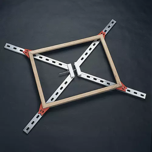 This popular clamp can handle frames from 5" x 7" to 26" x 30". If you have bigger frames, it can be extended with a common bar clamp. Features durable aluminum construction and self-squaring clamp pads, and comes complete with fully illustrated instructions.Features & Specs