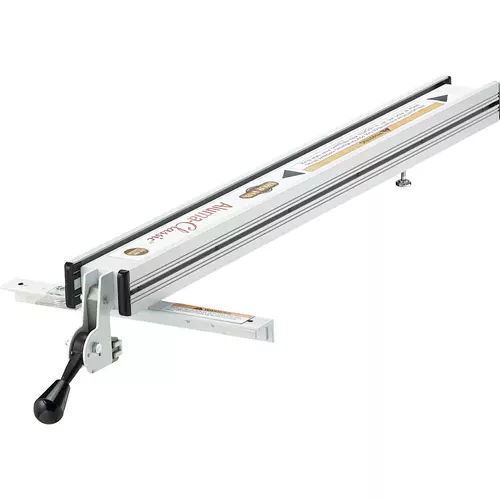 The W1716 Shop Fox® Aluma-Classic™ Fence features an extruded aluminum and steel construction, utilizing a sturdy T-shape design. A cam-lever front locking mechanism and torsion box design allow this fence to fit on just about any table saw without the need for a rear locking mechanism.