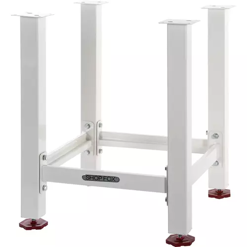 The cross braces have built-in recess for an optional 3/4" plywood shelf. The 26" X 26" footprint is ideal for smaller carving benches or use to support heavy machines. Legs are 32" high.