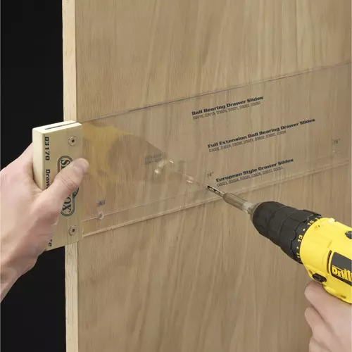 Take away the guesswork and layout process from drawer slide installation with this universal Drawer Slide Boring Jig. Handles our full range of standard Drawer Slides from 10" long to 26" long.