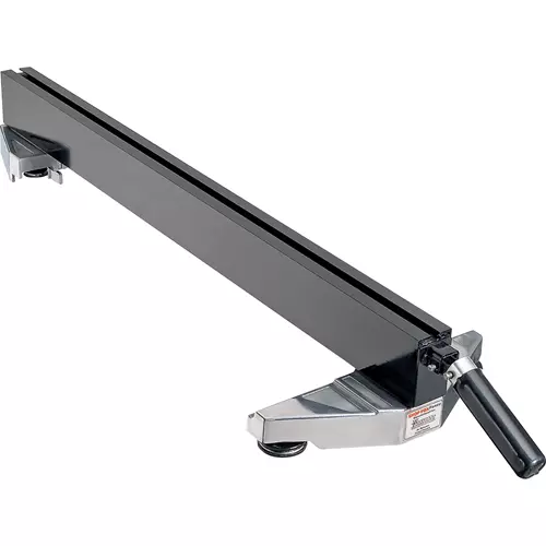 Unlike most standard and after-market fences, the Shop Fox® Fence stays in perfect alignment (within four thousandths of an inch), whether the locking mechanism is engaged or not, so you can make precision settings with complete confidence. The Shop Fox® Fence features ball bearing rollers for smooth movement, a large, locking lever, built-in micro precision adjustment knobs and special track for use with the Board Buddies® anti-kickback system (not included).