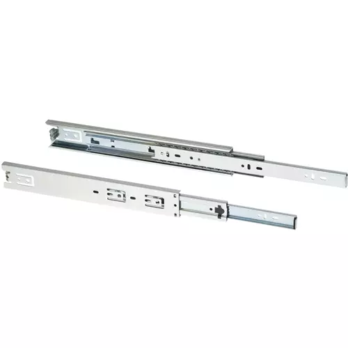 For the ultimate in drawer hardware, these Full Extension Drawer Slides support up to 100 pounds and feature multiple ball bearings for smooth operation. These Full Extension Drawer Slides measure 24" x 1/2" x 1-3/4". Includes two slides.