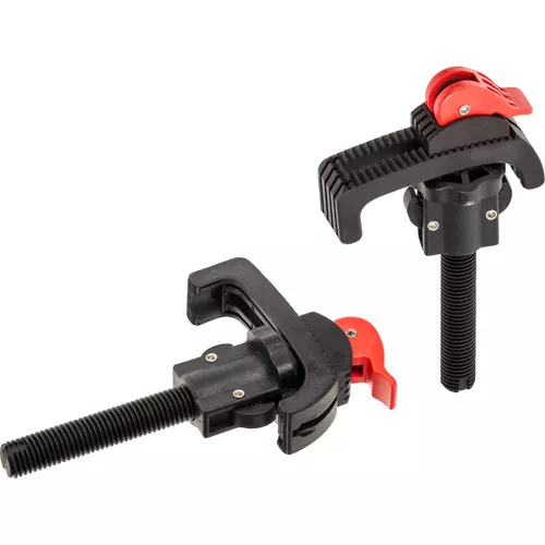 Quick-release hold down clamps are great for holding objects on all regular work benches. Work holding capacity is about 3-1/2" and requires 3/4" diameter dog hole.