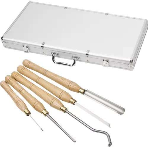 The massive HSS blades and long ash handles of the D3788 5-Piece Lathe Chisel Set provide stability and control for slower turning.