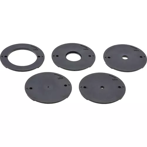 The five-piece Shop Fox D4947 Router Table Insert Ring Set allows you to fit most routers with your insert plate.