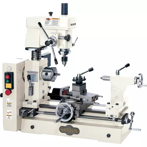 Hobby or entry-level machinists will not want to pass up this versatile machine. Great for turning, cutting threads, and drilling and milling small projects, this combo lathe is packed with extra add-ons like a 4-way turret tool post, 9-1/2" faceplate, 4" 3-jaw chuck, and a built-in rotating vise. Features a 16-1/2" swing over bed, 11-1/2" swing over saddle, 19-1/4" distance between centers, 3/4" spindle bore, and MT#3 tapers.Specifications