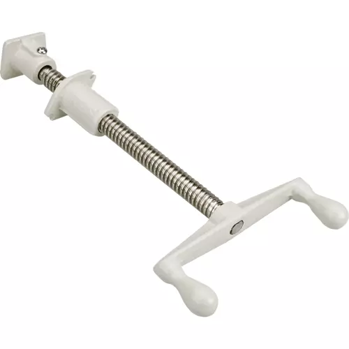 This Veneer Press Clamp is used to make custom veneering frames and other clamping fixtures by simply drilling a hole in the frame material to accept the threaded bushing. Double handle design produces greater torque and heavy-duty Acme threads ensure smooth operation. Removable swivel makes installation quick and easy. Overall length is 11-1/2".