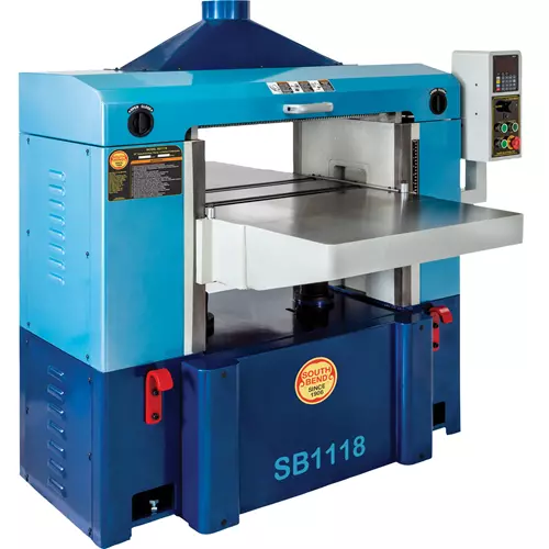 With its 25" x 9" planing capacity, massive 15 HP motor, and electronic table height controls with digital presets, this mammoth South Bend SB1118 Industrial-Duty Planer will blast through stock all day long with unparalleled efficiency and reliability.