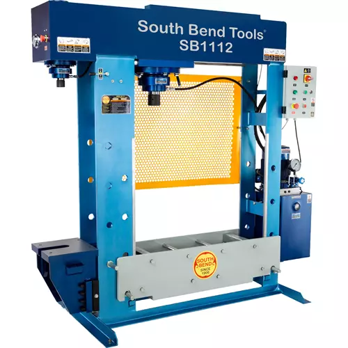 The SB1112 Dual-Station Hydraulic Press delivers 60 tons of power at the H-frame main station and 24 tons at the C-frame side station.