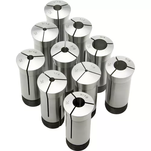 The South Bend SB1279 Precision 5-C Collet Set of 10 is sized from 1/8"–3/4".