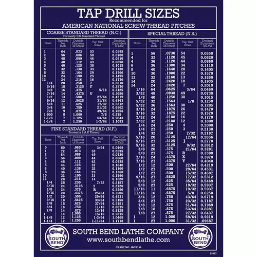 Image for South Bend SBCE0199 - Wall Chart Tap Drill Sizes (SBCE199)