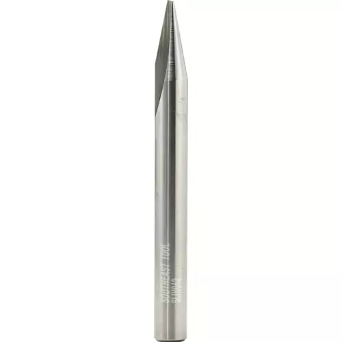 Shank: 1/4" Included angle: 22° Tip flat: 1/16" Overall length: 2-1/2" Flutes: 1