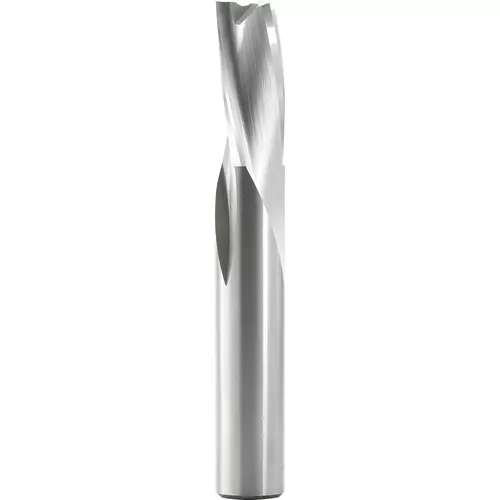 Three flute slow spiral downcut finisher sharp edges produce very smooth finishes in hard plastic, solid surface, wood composites and natural wood.