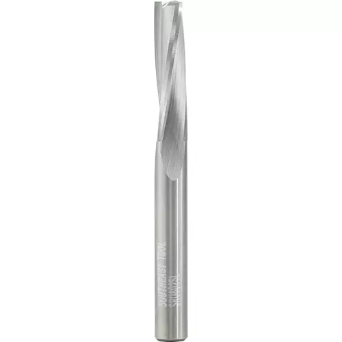 Three flute slow spiral upcut finisher sharp edges produce very smooth finishes in hard plastic, solid surface, wood composites and natural wood.