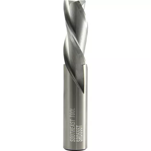 Three flute spiral downcut finishers are designed to improve the finished material upper edges at feed rates similar to two flute spiral speeds. May increase tool life compared to two flute tools. Downcut forces improve material hold down. General purpose applications. These tools cut wood composites, solid surface and natural wood.