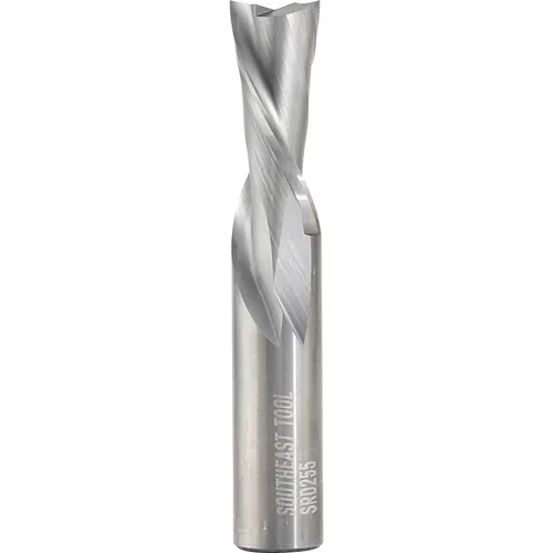 Two flute downcut spiral tools leave a smooth top edge cut. Downcut forces assist holding down material during use. General purpose applications. Recommended for solid surface, wood composites and natural wood.